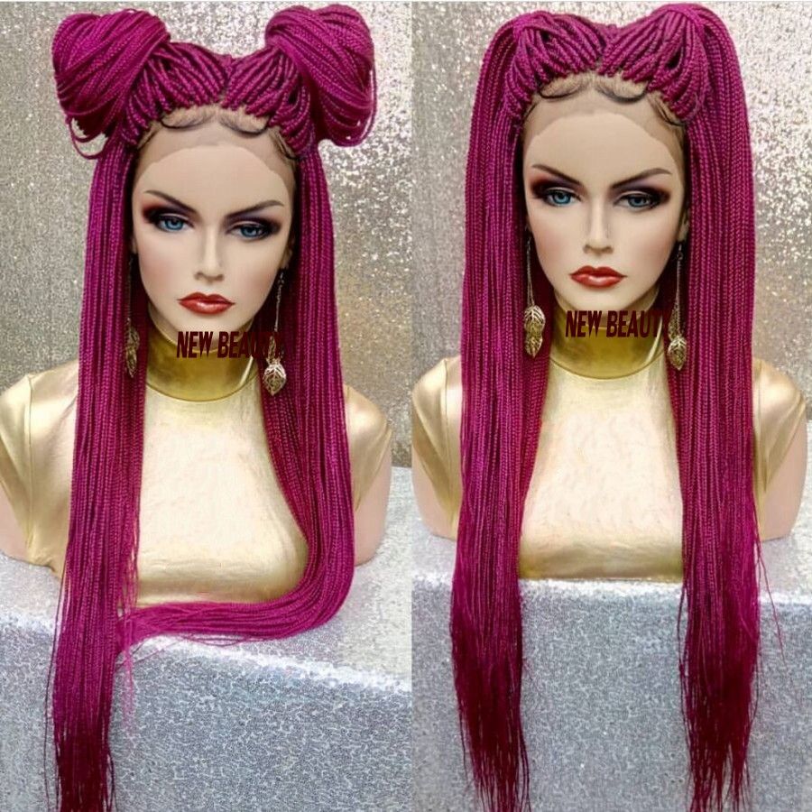 2019 New Pink Red Braided Wigs With Baby Hair Long Box Braids Wigs Glueless Synthetic Lace Front Wigs For Black Women Heat Resistant Hairpieces For