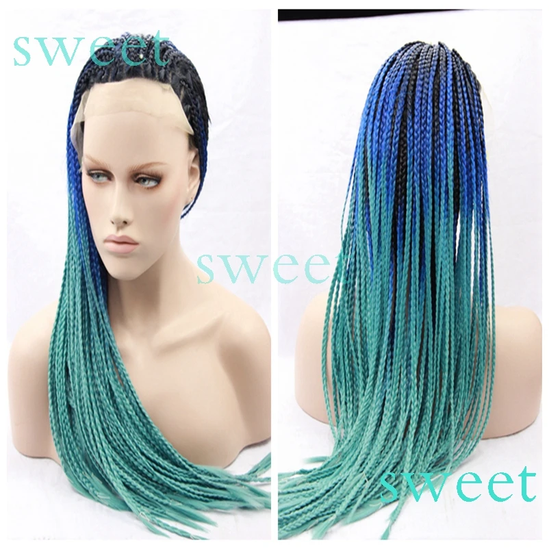 Ombre Blue Braiding Synthetic Lace Front Wig Curly Heat