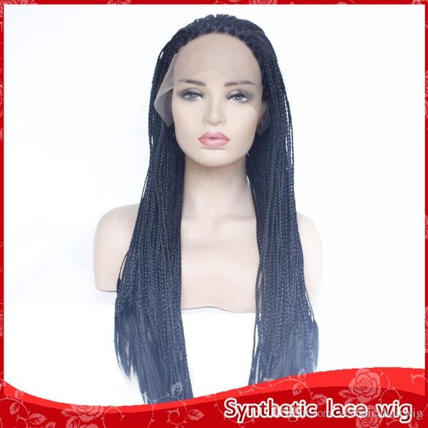 Fast Shipping Top Quality Black Braided Box Braids Wig 26in Real Hair Natural Looking Synthetic Glueless Front Lace Wigs For Women Free Part Realistic
