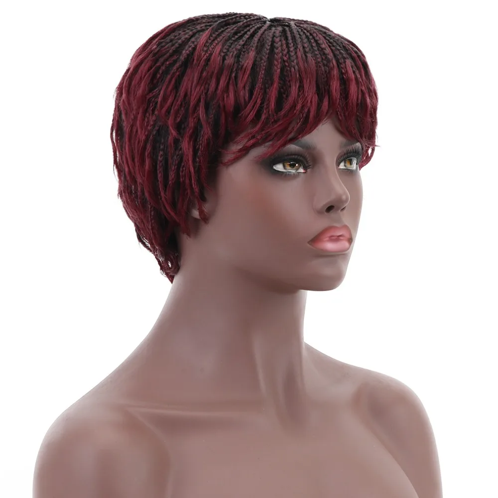 Us 17 93 26 Off 12 Short Braided Box Braids Wigs For Black Women Synthetic Hair Cosplay African American Women S Wig With Bangs Heat Resistant In