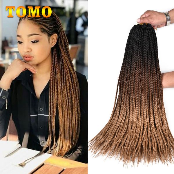2019 Tomo Crochet Braids 24 Long Handmade Box Braids Ombre Black Brown Blonde African American Synthetic Braiding Hair Extensions 22strands Pack From