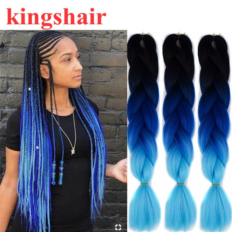 Jumbo Braids Colorful Synthetic Kanekalon Hair Extensions For Diy Crochet Box Braiding Ombre 2tone Black Light Blue 3pcs 100g Pcs 24inches