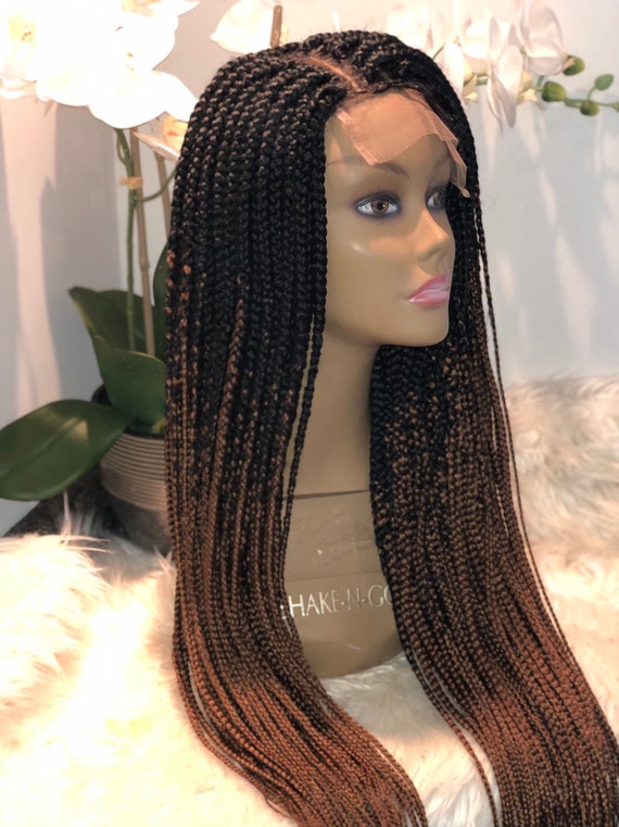 Full Lace Closure 4x6 Ombre Box Braid Wig Color Black Gold