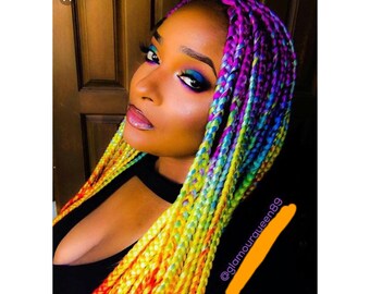 Jumbo rainbow box braids. You can spot women with this braided synthetic dreadlock almost anywhere. Over the past few years faux locs have become more popular.
