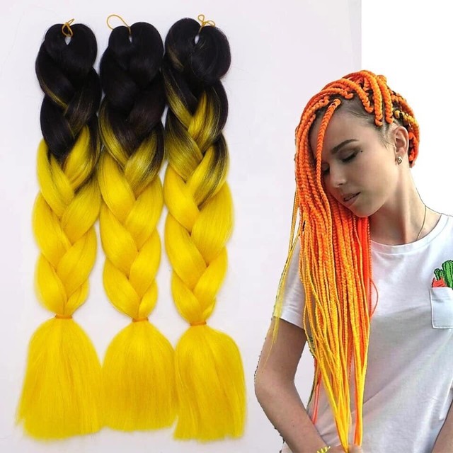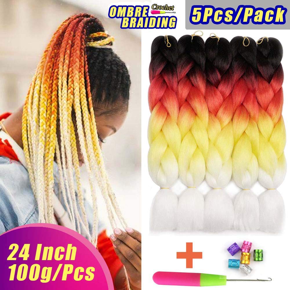 Aidusa Ombre Colors Braiding Hair Kanekalon 5pcs Synthetic Braids Hair Extensions 24 Inch Three Tone Ombre Braiding Hair Crochet Braids 100g 57